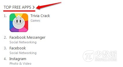 3. 切换到了美区,在上方选择 App Store,然后在右侧栏中点击「TOP FREE APPS」,在里随便选择一个 App,图中还是以 Mailbox 为例。