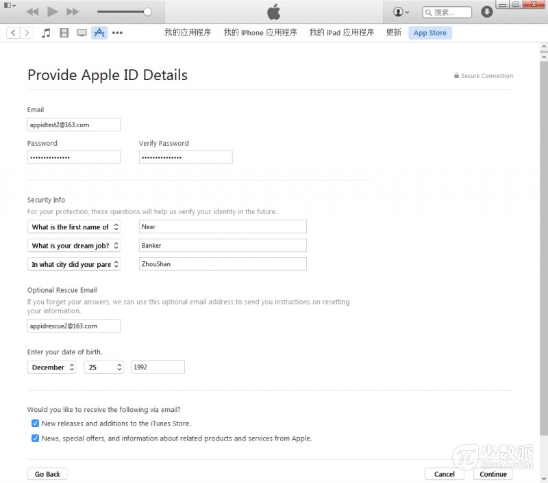 1. 你需要注册好两个邮箱,一个是拿来当做 Apple ID 的,另一个则是用来找回密保问题答案的。
