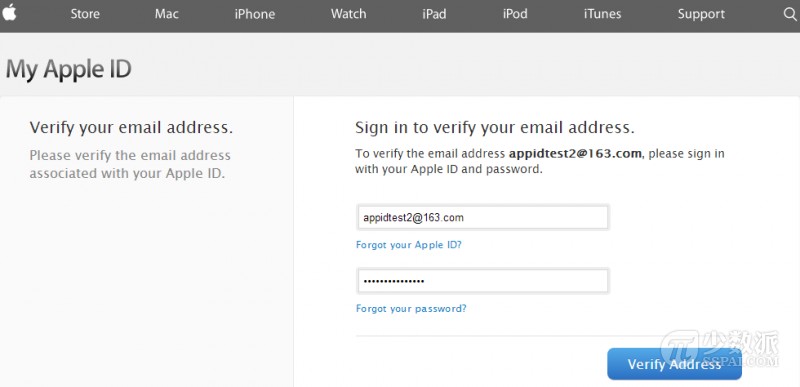 打开需验证的邮件,点击「Verify now」跳转网页,填入刚刚注册的美区账号「Apple ID」和密码「Paasword」,点击「Verif Address」,大功告成。